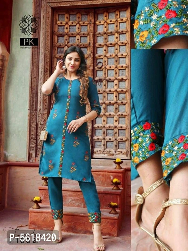Type: Kurta Bottom Set, Style: Embroidered, Design Type: Straight, Delivery Within 6-8 business days.