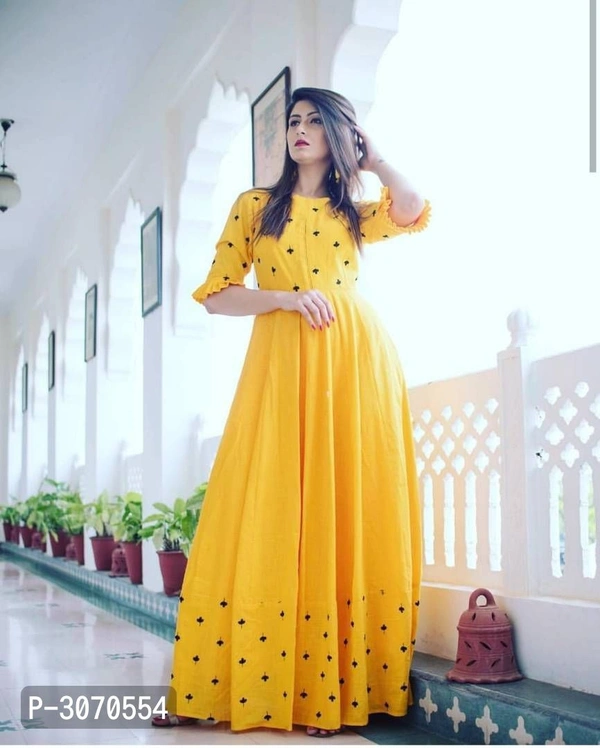 Color: Yellow Fabric: Rayon Type: Stitched Style: Embroidered Design Type: Anarkali Delivery Within 8-10 business days. • Fabric: Rayon •Sleeves: 1/2 Sleeves • Length: Kurti- Up To 52 in • Contain: Women's Kurti