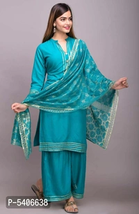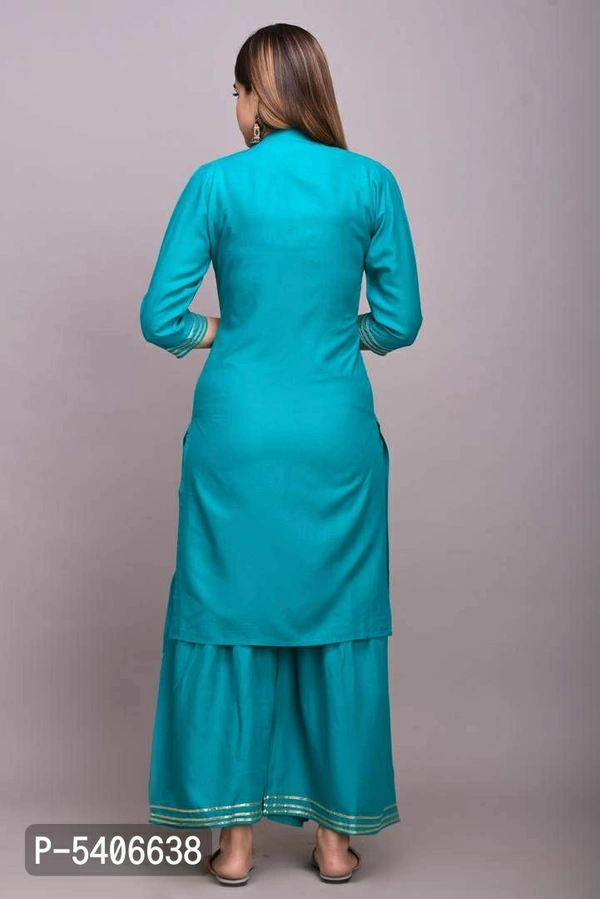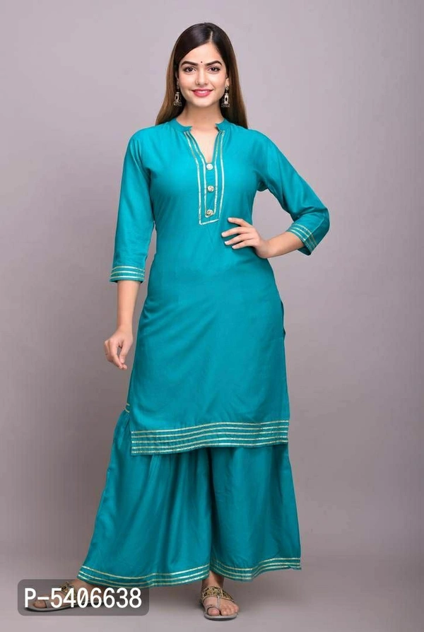 Women Rayon Gotta Work Green Kurta Sharara With Dupatta Set