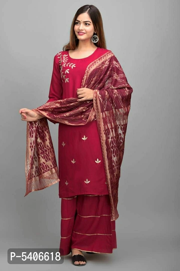 Women Rayon Gotta Work Red Kurta Sharara With Dupatta Set